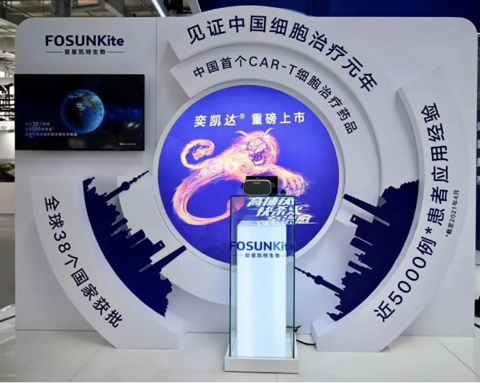 迅猛发展的生物药自然不会缺席,不少生物制品在展会中亮相。复星凯特将奕凯达(阿基仑赛注射液)放在了最显眼的位置,该产品是国内首个获批的CAR-T细胞治疗产品,于今年6月22日上市,用来治疗既往接受二线或以上系统性治疗后复发或难治性大B细胞淋巴瘤成人患者。百济神州则带来了百泽安(替雷利珠单抗注射液),该产品目前正进行单药及联合疗法临床试验,开发一系列针对实体瘤和血液肿瘤的广泛适应症。