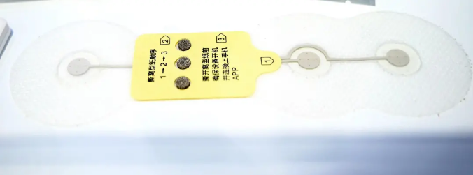 手术机器人的不远处是由乐普医疗带来的智能健康监测设备。小小的戒指血氧仪为阻塞性睡眠呼吸暂停综合征患者带来福音,通过和App关联,血氧仪可整晚监测血氧心率变化。工作人员介绍:“该款血氧仪不仅可以极大保障用户睡眠的舒适度,而且当血氧过低或心率异常时,它将切换到震动模式,唤醒用户,让呼吸恢复顺畅。”和心率有关的另一款设备,静静躺在GE的展柜中,这款智能心贴造型奇特、薄如蝉翼,极大提升了佩戴的舒适性,别看它轻巧,但该有的功能一个不少,还能连接手机App。在科技的加持下,该款智能心电贴可检测心电、血氧、呼吸及体温,实现基于人工智能云系统的预警能力,如就医提醒、家人信息共享、实时定位等,防患于未然。